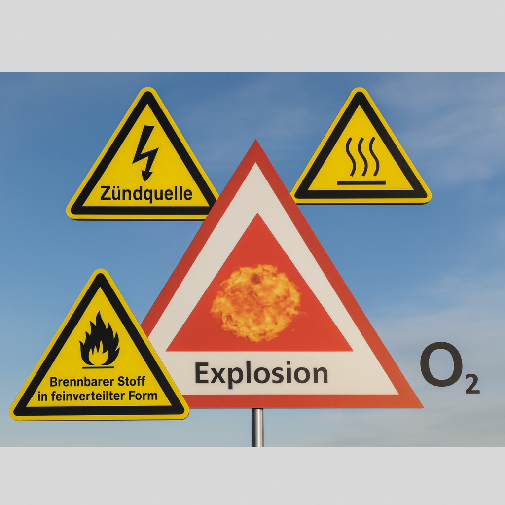 🛑 Brennbare Stoffe in explosionsfähiger Form vermeiden