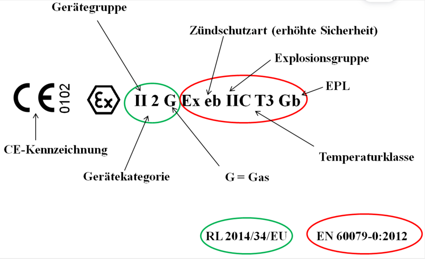 Ein Beispiel für die Kennzeichnung eines gasexplosionsgeschützten Gerätes