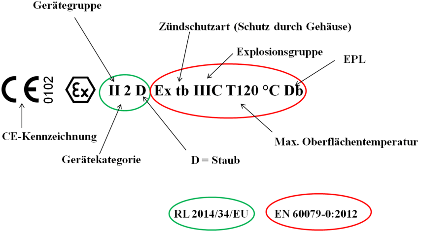 Ein Beispiel für die Kennzeichnung eines staubexplosionsgeschützten Gerätes