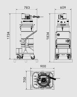 Einsatzbereich: Industriestaubsauger für Staub und Flüssigkeiten. Großdimensioniertes Modell mit extra starkem Sammelvolumen, ideal für anspruchsvolle Reinigungsaufgaben.
