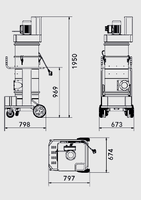 Einsatzbereich: Patentiertes Magnetventilsystem verschließt die Filter während der Reinigung → maximale Effizienz. Motorisierter Staubsauger mit Zentrifugalventilator für sehr hohe Luftmengen. Speziell für die Absaugung von Feinstaub aus der Luft entwickelt. Geeignet für den kontinuierlichen 24/7 Betrieb ohne Wartung.