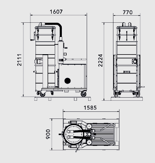 Einsatzbereich: Industriestaubsauger für Staub. Sehr leistungsstarkes Modell mit zwei 5,5 kW Turbinen, ideal für schwere Anwendungen mit großen Staubmengen. Geeignet für den wartungsfreien 24/7 Betrieb.