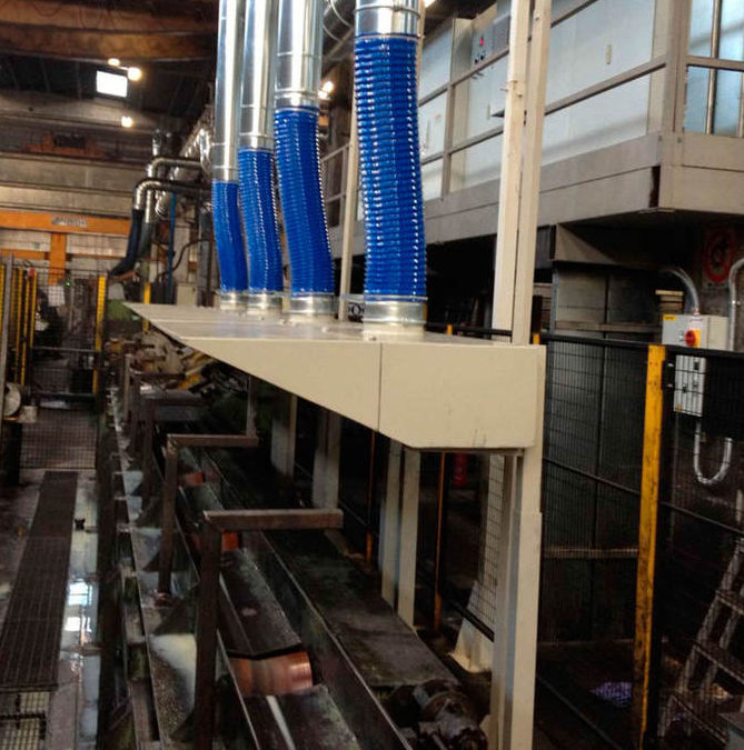 Diese Anwendung demonstriert, wie speziell konstruierte Hauben selbst in Förderbandtechnik Bereichen für sichere und effiziente Absaugung sorgen.