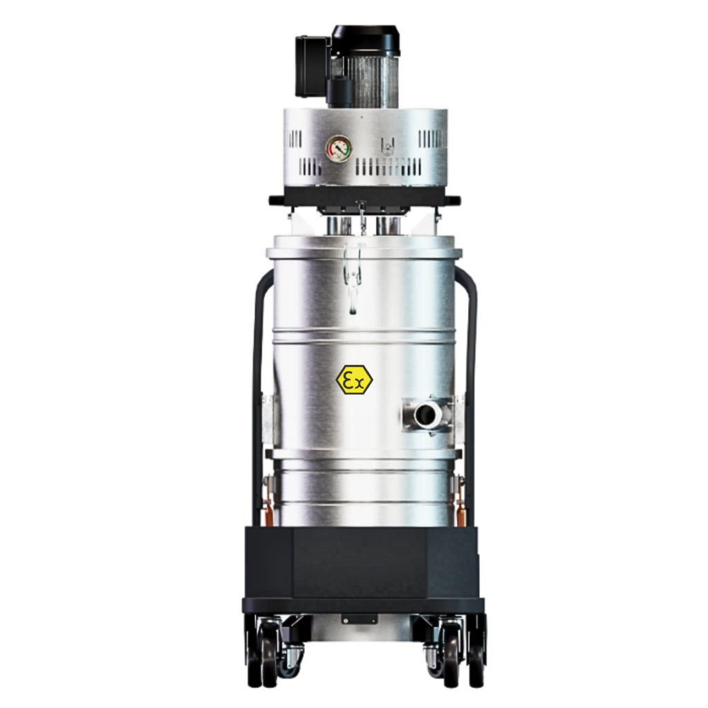 Einsatzbereich: Industriestaubsauger für Staub. ATEX zertifiziert für den sicheren Einsatz in explosionsgefährdeten Bereichen (Zone 20/21). Geeignet für Dauerbetrieb (24/7) ohne Wartung.