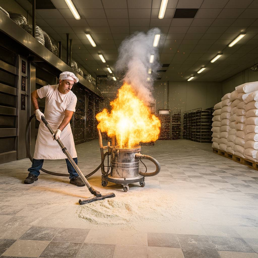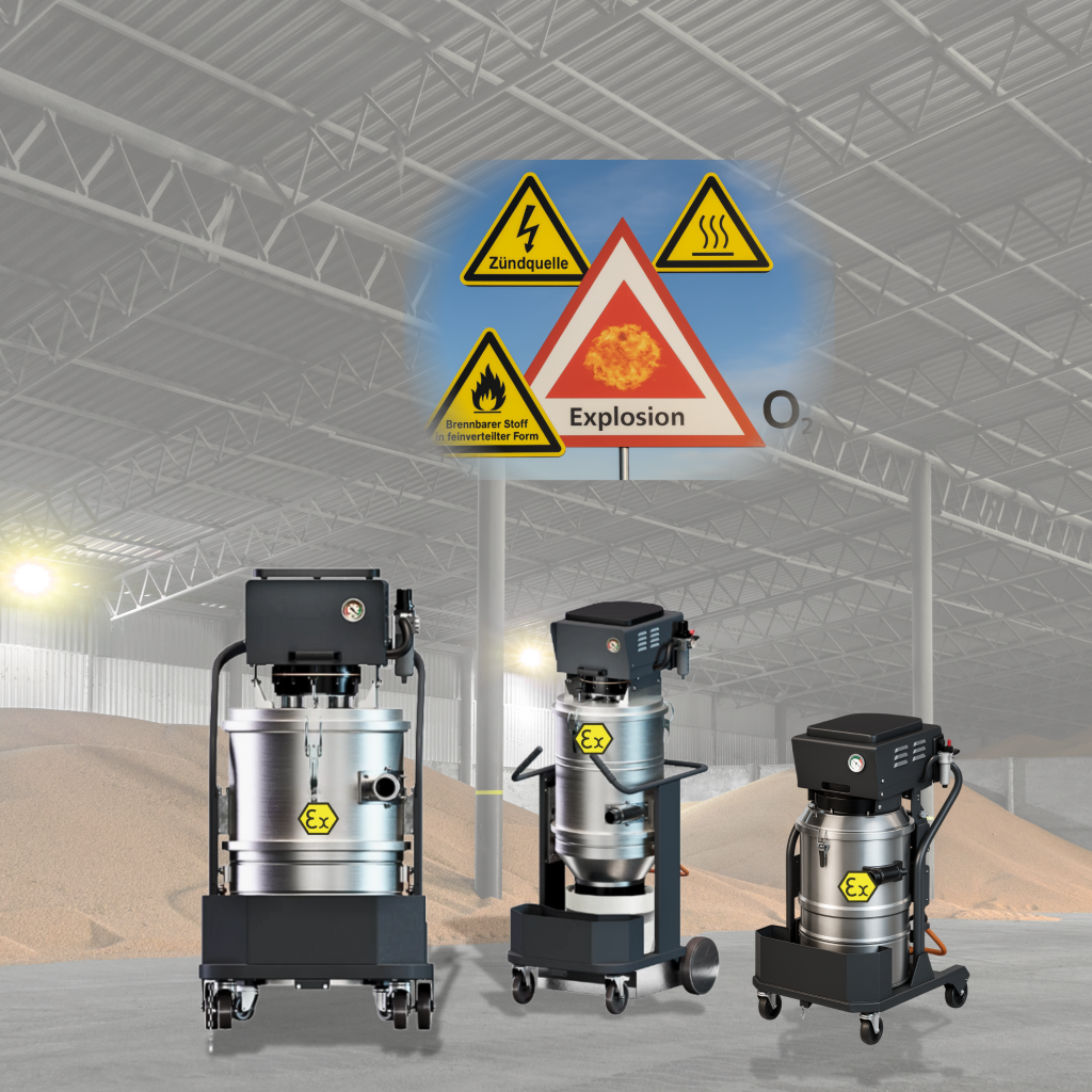 Anreicherung mit Gas, explosiven Stäuben oder entzündlichen Flüssigkeiten ein hohes Explosionsrisiko aufweisen und daher die Verwendung eines traditionellen Elektrosaugers nicht ermöglichen.